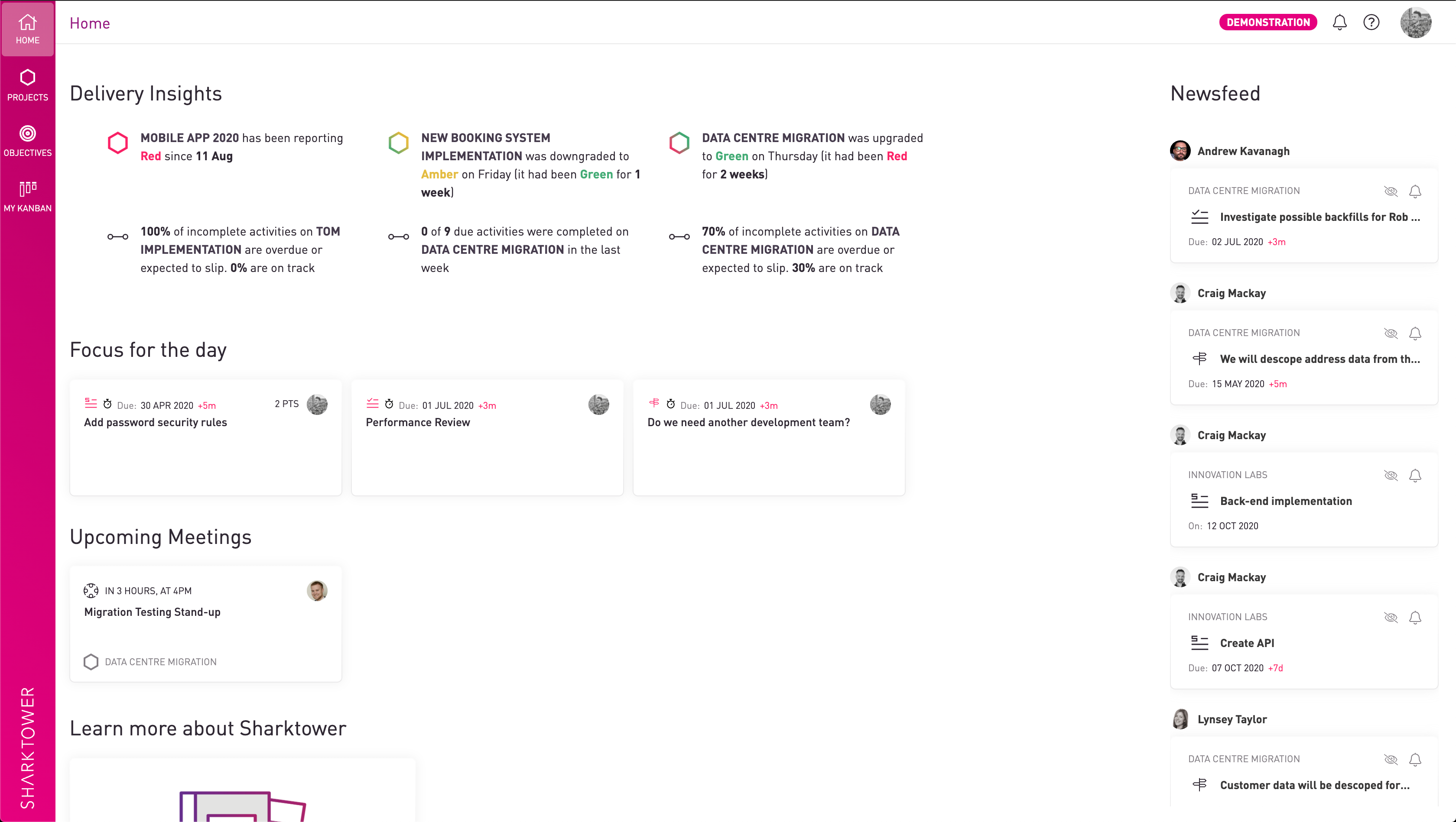 This is your personal information space. You can see an overview of all project activity and be alerted to anything that needs your attention. And any upcoming meetings are also displayed.