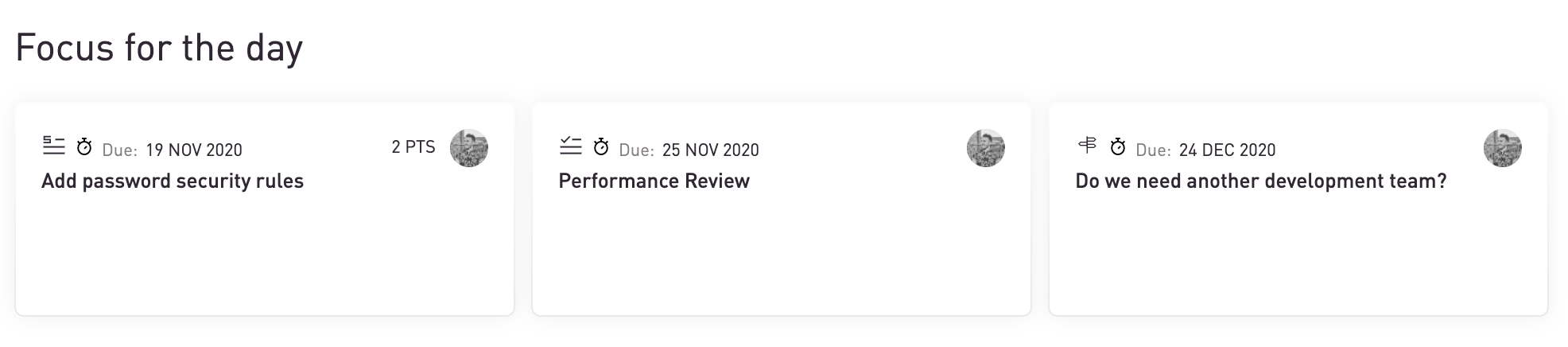 Focus for the Day helps to give you clarity on must-do items and helps you avoid getting lost in your Kanban when there's a lot going on. It's also a really quick way to clean up your kanban if it's got cluttered.